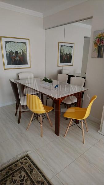98 m² de área privativa, com 3 dormitórios, sendo uma suíte, cozinha mobiliada, sala de estar e jantar e sacada. São três camas de casal com 1 colchão extra de solteiro.