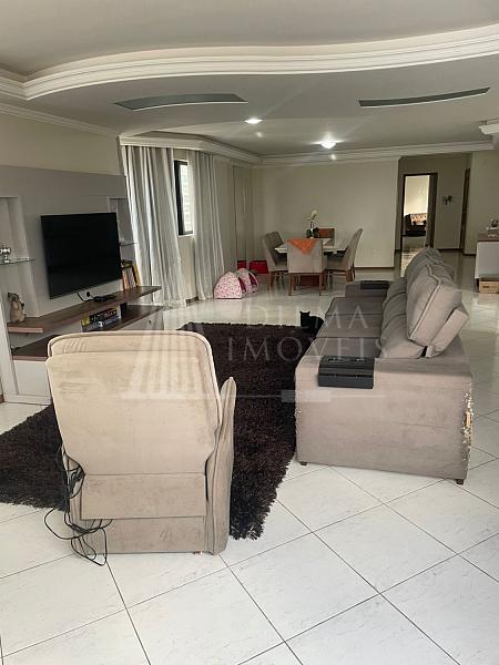 Apartamento com vista total da orla, com 308m² privativos, mobiliado e decorado, 4 dormitórios sendo 2 suítes, living 3 ambientes, sala de estar, sala de jantar, sala intima, cozinha, churrasqueira a carvão, banheiro social, área de serviço e 2 vagas de garagem individuais.