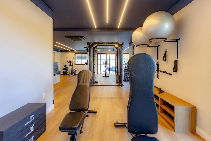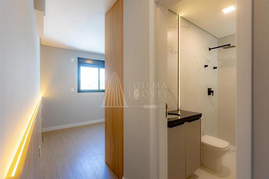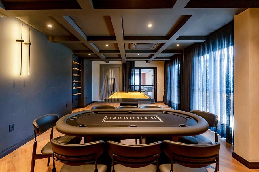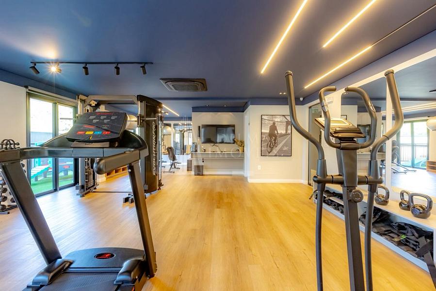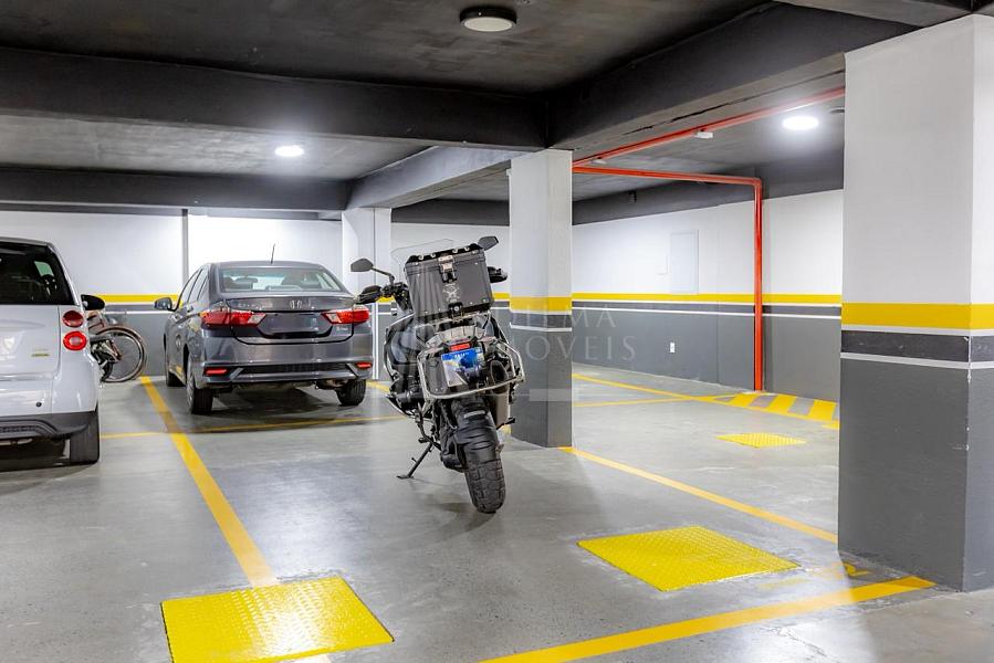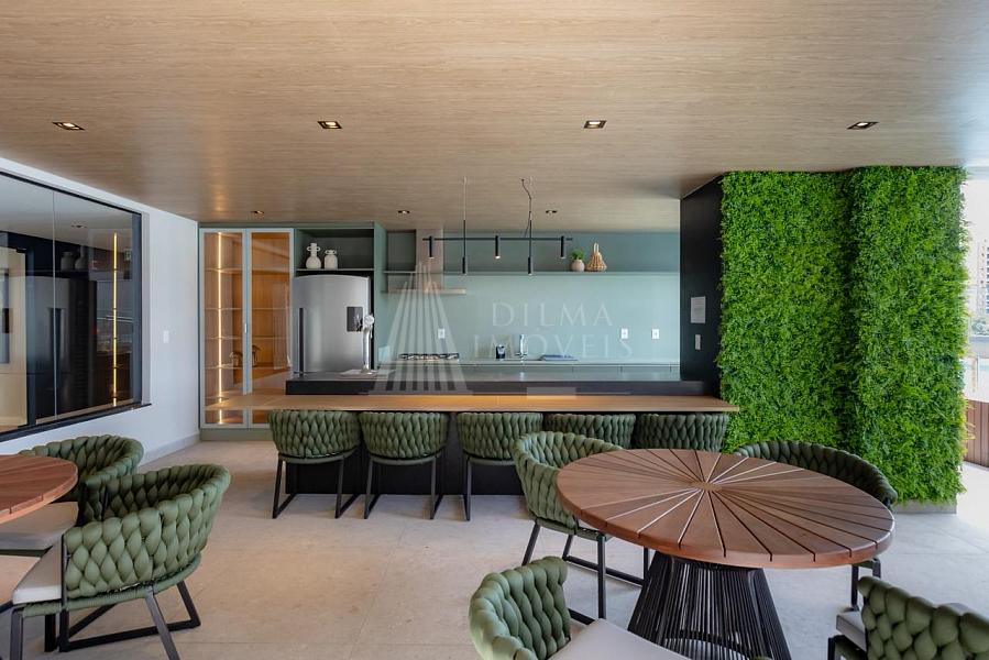 O apartamento tem 2 suítes, lavabo, churrasqueira a carvão na sacada, além de 2 vagas de garagem térreas.