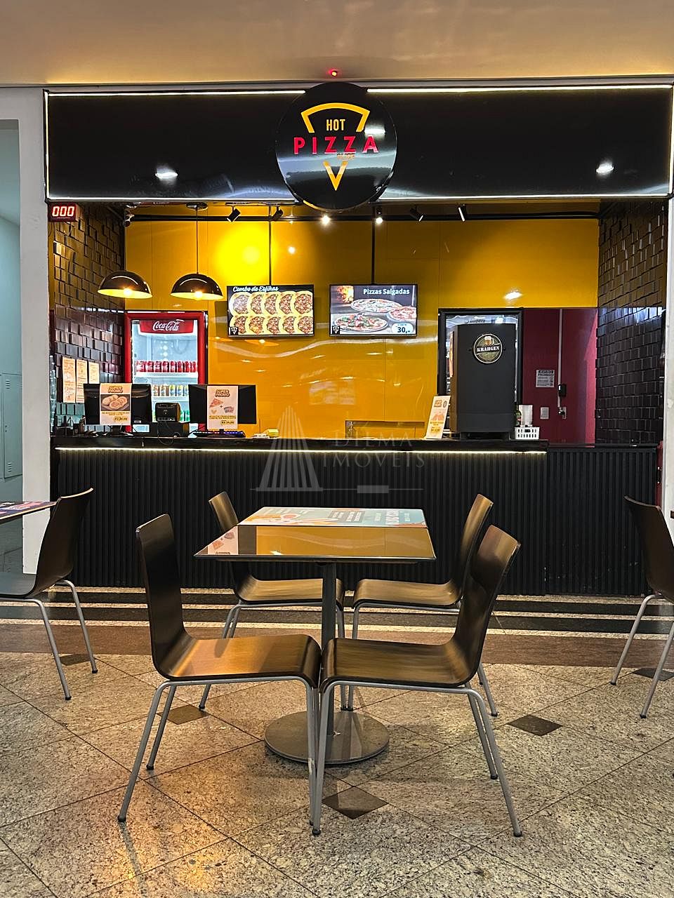 Estabelecimento comercial, equipamentos e utensílios da loja Hot Slice Pizza, no Atlântico Shopping Center.